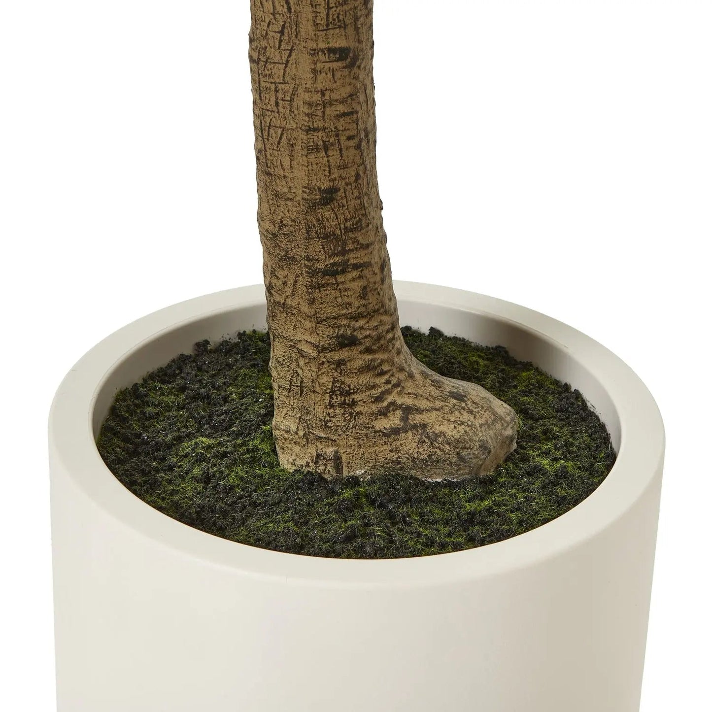 Immerse your customers in the sun-drenched charm of the Mediterranean with our magnificent Apulia Olive Tree. This lifelike 240cm botanical marvel boasts an authentically gnarled trunk and branches, adorned with silvery-green lanceolate leaves of exquisite detail. Nestled among the foliage, realistic olive fruits add to its captivating allure. Presented in a chic white pot, this versatile piece seamlessly integrates into various settings. A true statement piece for contemporary or rustic spaces, the Apulia Olive Tree infuses sophistication into homes, offices, and hospitality venues. Its maintenance-free nature ensures enduring beauty without the need for watering or pruning, making it an irresistible option for busy customers. Complete the Mediterranean garden feel, pair with lavender and rosemary plants. Encourage creative styling by recommending terracotta pots and woven baskets for a rustic appeal, or sleek metallic planters for a modern twist. Inspire your customers to craft cozy reading nooks with neutral linens and natural textures, or to create inviting Mediterranean-inspired entryways. This versatile tree complements a wide range of interior styles, from coastal and beach-themed decor to Tuscan and French country aesthetics, and even modern farmhouse or industrial chic designs. By stocking this adaptable piece, you'll offer customers an instant uplift for any room, balcony, or patio. The Apulia Olive Tree embodies timeless style and effortless elegance, making it a must-have for discerning interior enthusiasts and a valuable addition to your product range.