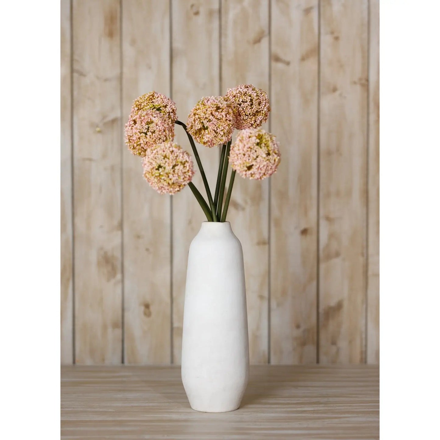 The Pink Allium Stem from Hill Interiors offers a stunning and lifelike floral accent for any space. Crafted with meticulous attention to detail, this faux bloom captures the essence of the allium flower, a botanical marvel known for its spherical clusters of tiny florets. The delicate pink hues and lush, feathery texture create a visually captivating piece that can seamlessly integrate into a variety of interior styles, from modern minimalist to romantic farmhouse. Pair this alluring stem with other neutral-toned botanicals or mix it with pops of vibrant color to curate a truly eye-catching display. Whether showcased in a vase, incorporated into a wreath, or used to adorn a tablescape, the Pink Allium Stem from Hill Interiors is a versatile and sophisticated addition to any home or retail setting.